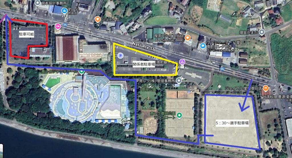 ※当日、本部横のアスファルト駐車場は関係車両が停まりますので、駐車しないでください。